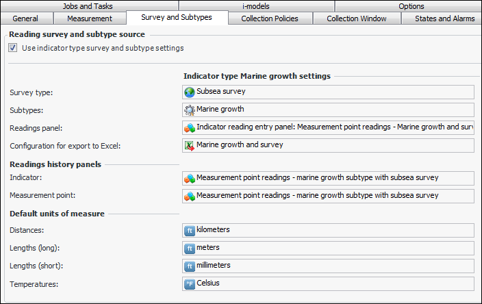 15. If the indicator type supports subtypes and surveys, you can select the Survey and Subtypes tab to review information. For example: