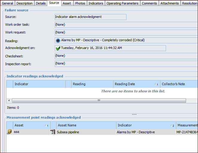• Scratch: When a failure record is created by clicking New in the site’s or asset’s Performance Management view, Failures tab, the failure is created “from scratch”.To View a Failure Record’s Source