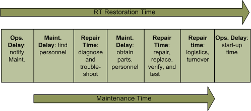 • Restoration Time (RT): The time between the date and time when the current failure occurred and the date and time when it was returned to service.Failure Restoration Times