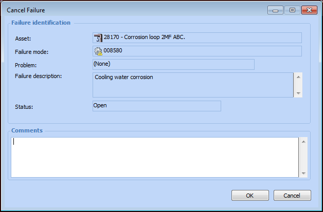 4. Click OK. The failure record’s status is changed to Canceled.