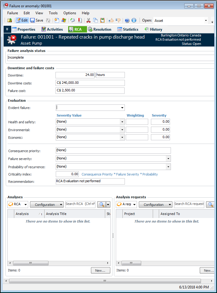 The value is shown in the Failure analysis status box:To Evaluate Failures for RCA