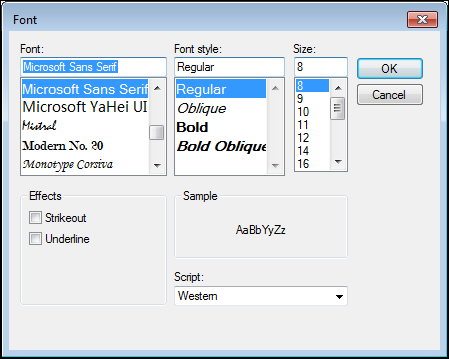 7. Click the Font icon. The Font dialog appears.