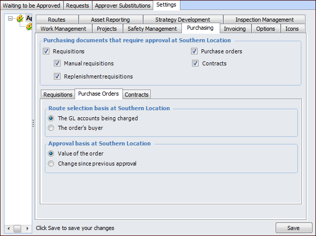 7. If purchase orders require approval, select the Purchase Orders tab.