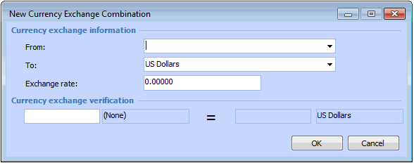 3. Click New Currency Combination. The New Currency Exchange Combination dialog appears.