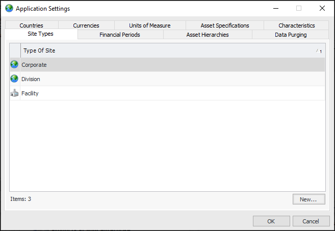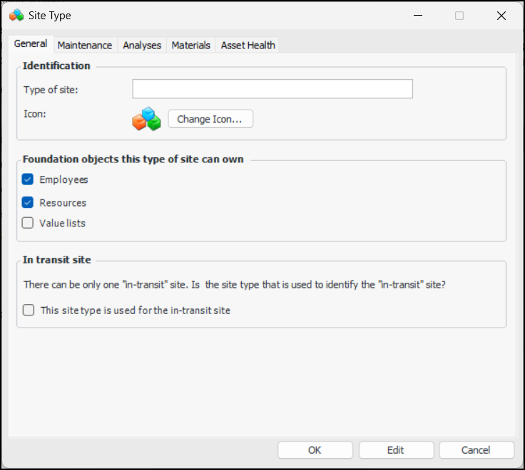 18. Click OK to save the settings and close the Site Type dialog.
