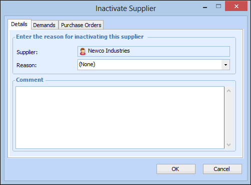 9. When you are finished, click OK. The system sets the supplier status to inactive.