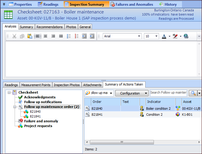 The History view displays audit information for SAP properties.To Link a Checksheet to an SAP Maintenance Order