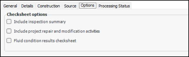 22. Select Include project repair and modification activities to add the Modifications view to the checksheet. Modification and repair inspection (MRI) checksheets are used to inspect an asset after a major construction project has reached a milestone or completion. Inspection activities ensure that the modifications or repairs are done according to the appropriate standards and codes.Note: Fluid condition results checksheet is selected and read-only if the checksheet was populated with fluid sample analysis results by a data loader.To Add Indicators to a Checksheet