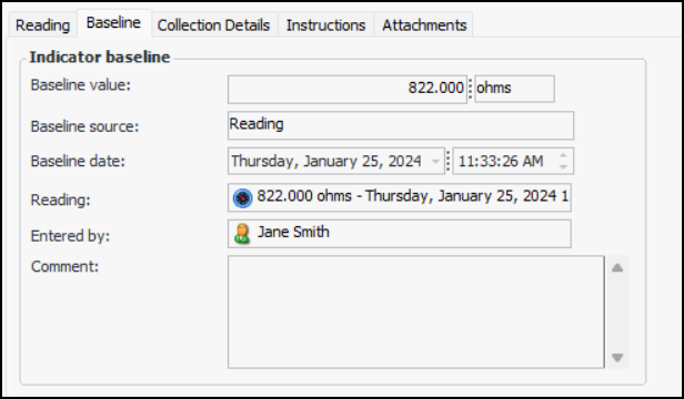 5. If the Baseline tab is available, select it to see the indicator baseline information. For example: