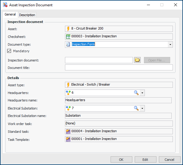 • In the Inspection document field, click the folder icon to navigate to the directory and file to attach to the inspection document.