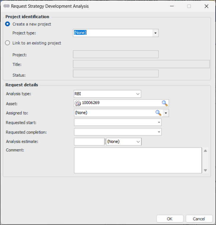 • To link to an existing project, select Link to an existing project. Click the browse icon () to select the project and click OK. The project’s number, title, and status are displayed.