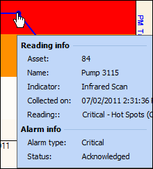 4. You can acknowledge any of the warnings or alarms displayed on the tabs. Right-click the indicator and click Acknowledge Alarm. For detailed instructions, see Acknowledging Indicator Alarms and Warnings.To View Indicators from an Asset