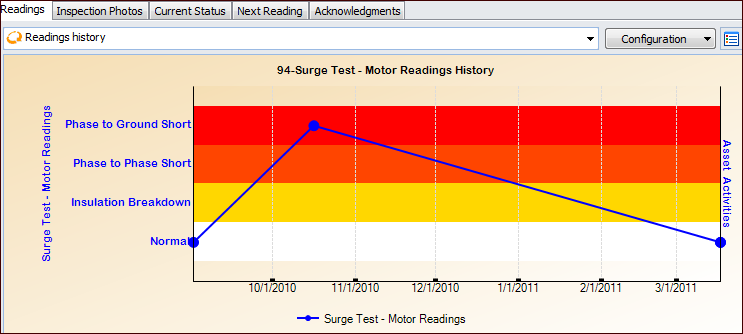 4. You can select the Inspection Photos, Current Status, Next Reading, and Acknowledgments tabs to view more information about the indicator.