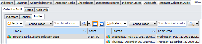 1. In the Asset window, select the Inspection Management view, Utilities tab, Collection Audit tab, and then the Profiles tab.