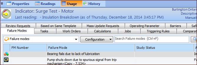 2.To View an Indicator’s Associated Failure Modes