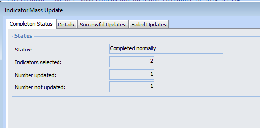 9. The Details tab displays the properties that were copied and lists the target indicators. Select the Successful Updates or Failed Updates tab to view detailed information about the target indicators.