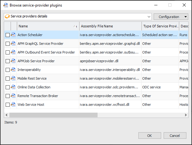 6. Click Browse to add a service provider. The Browse Service Provider Plugins dialog appears: