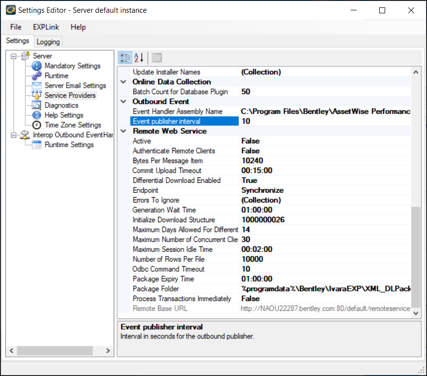 • Interop ServiceBus Endpoint – The Rest endpoint of Bentley’s interoperability service bus api. For example: