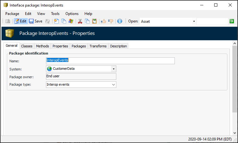4. Right-click the InteropEvents or InteropEventsSyncAssets package and click Copy. The Interface Package window appears, for example: