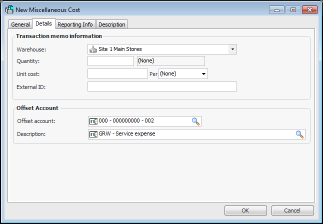 2. Click New. The New Miscellaneous Cost dialog appears.