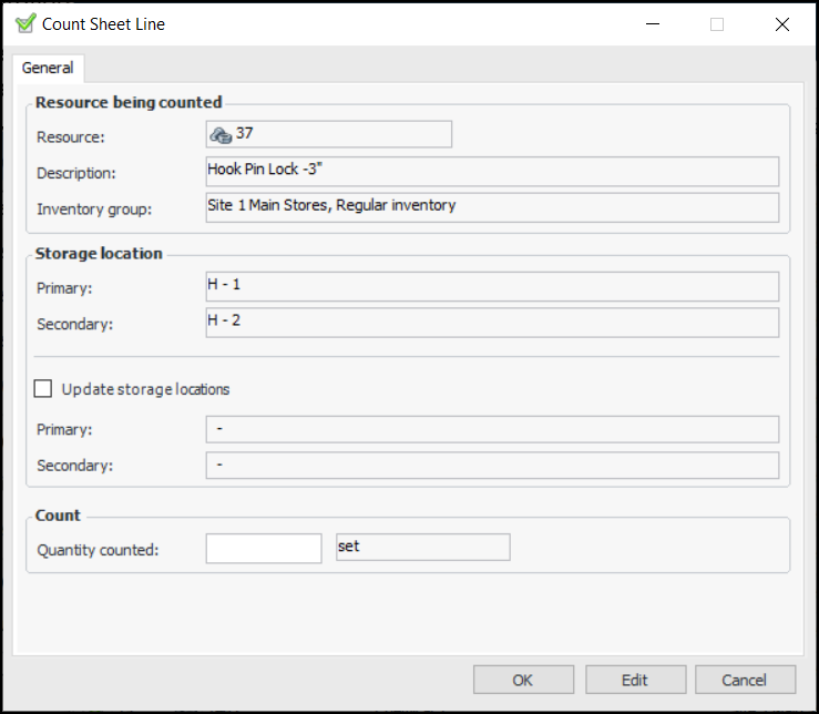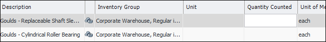 9. Click OK.Tip: You can also enter the results by selecting a part and pressing F2. The Quantity Counted box becomes open for editing.Enter the quantity for the part. Press the Tab key. The Quantity Counted box for the next part becomes open for editing.