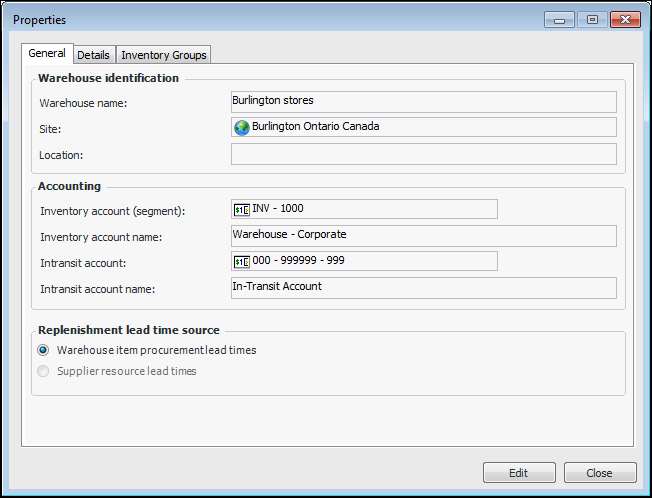 4. To view the warehouse’s properties, from the Warehouse menu select Properties. The Properties dialog appears.