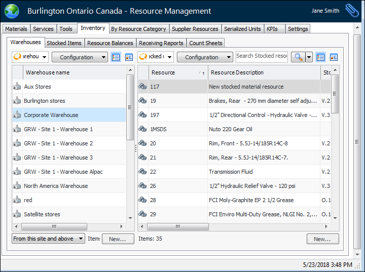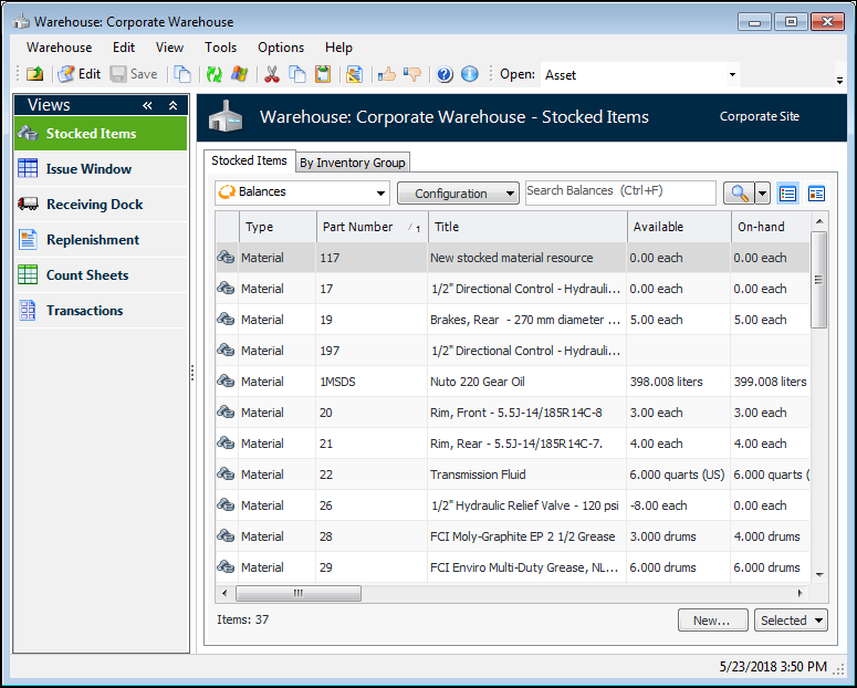 3. Double-click the warehouse that you want to open. APM opens the warehouse’s Stocked Items view.