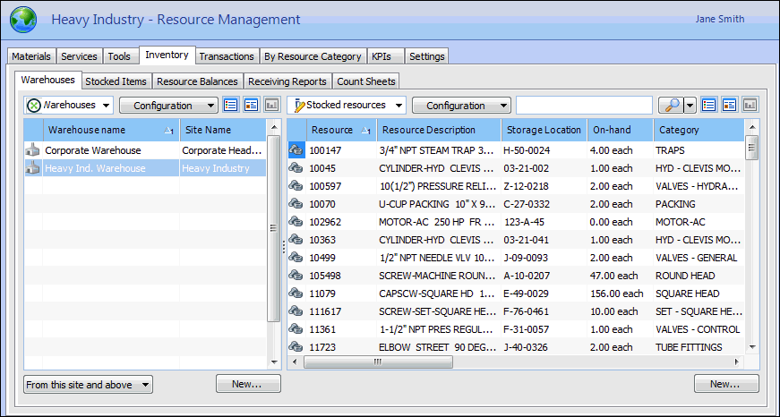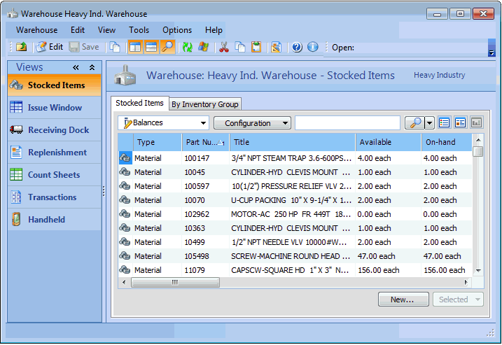 3. Double-click the warehouse that you want to open. APM opens the warehouse’s Stocked Items view.
