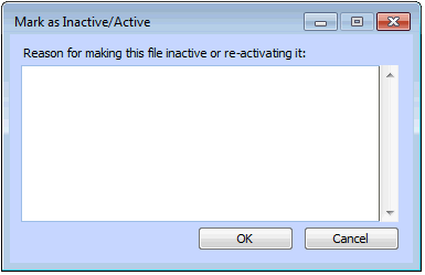 2. Open the warehouse item. From the Warehouse Item menu, select Mark as Inactive. The Mark as Inactive/Active dialog appears.
