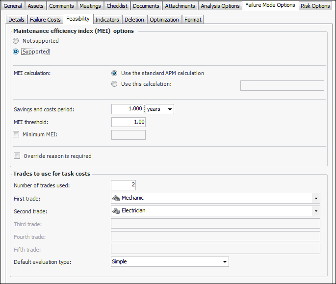 1. The Feasibility view will appear in the failure mode’s Maintenance Action Plan windows.