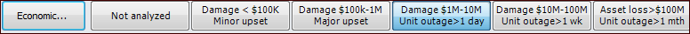 2. To Evaluate Economic Effects of Failure – The economic consequence of failure reflects the financial effect of the failure on assets and production. Labor and material costs associated with lost production and with repairing or replacing the damaged equipment are economic consequences. You can use a questionnaire or select a value directly, depending on the risk analysis settings.