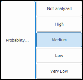 2. Complete each of the evaluations, selecting options for each category, entering notes, and using the arrow buttons to move between categories. If different evaluation types have been defined in the form’s design, you can select Simple or Detailed, as required by the complexity of the failure mode that you are analyzing.As you move through the analysis, the Severity box displays the most severe score assigned to your selections. For example, if you select options for three categories, two of which have a result of “Negligible” and one with a result of “High”, the score for the evaluation as a whole will be “High”. However, if a mitigation category has been defined for the evaluation, its score can raise or lower the severity. The resulting ranking is used in the risk matrix.