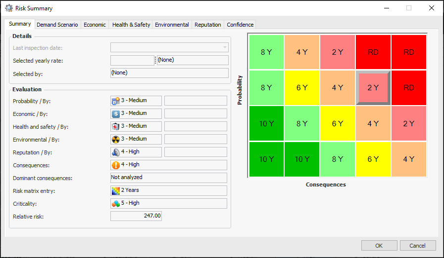 13. When you are finished the evaluation, click OK. The result of the economic evaluation is shown in the risk matrix. For example:To Evaluate Other Consequences