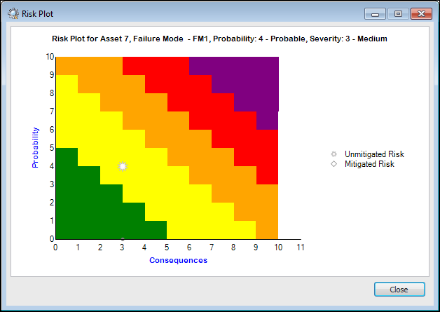 • Use evaluation forms – The analysis team uses pop-up questionnaires to evaluate the probability of failure, consequences (economic, health and safety, environmental, and reputation), and confidence factors. APM then calculates the risk and shows it in the risk matrix. This process can be used with failure modes or demand scenarios.