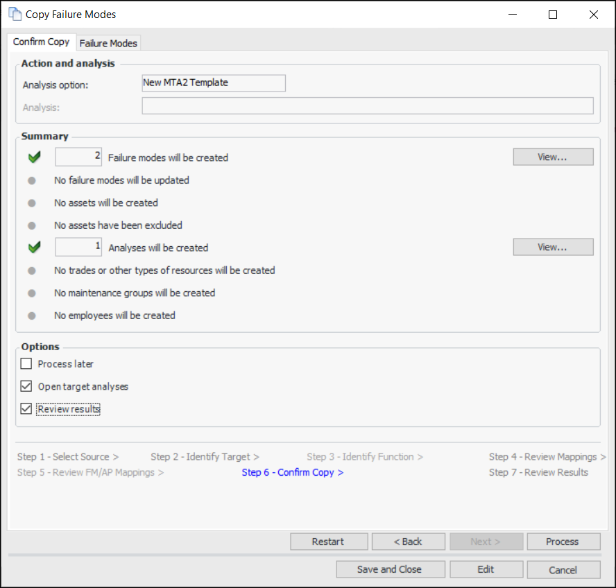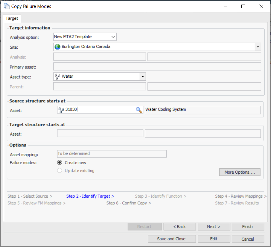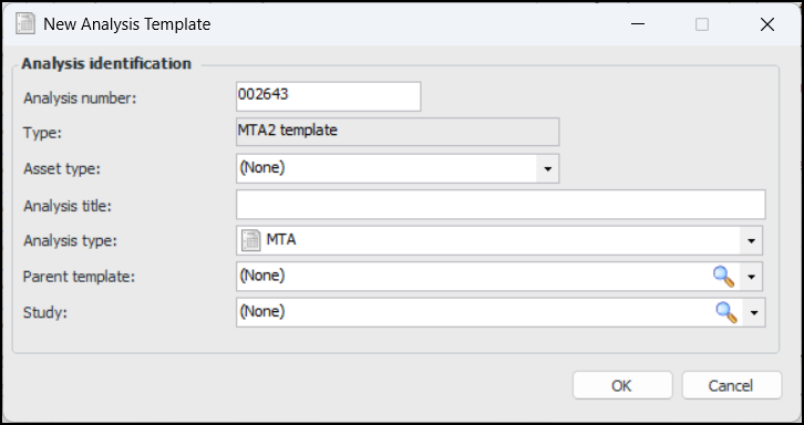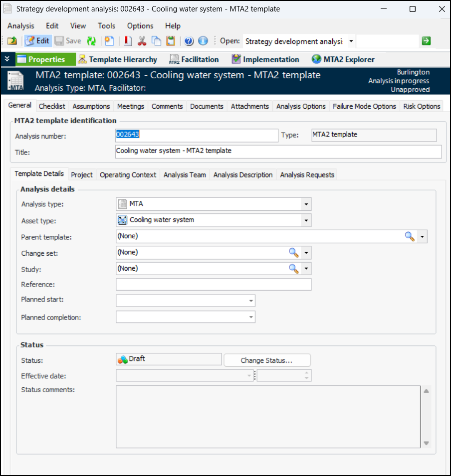 • No information is displayed in the Asset boxes and columns in the analysis.You can organize analysis templates in a hierarchy that includes MTA2 and RCM2 templates. For more information, see Setting up a Hierarchy for MTA2 Templates.To Create an MTA2 Template Based on an Existing Analysis
