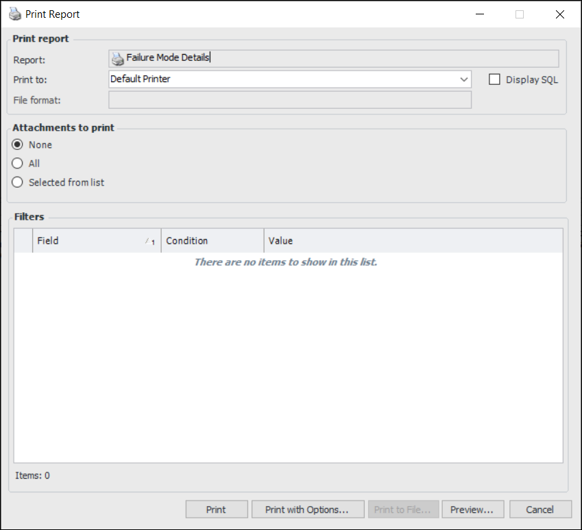 • Click All to print files attached to the analysis and its failure modes.