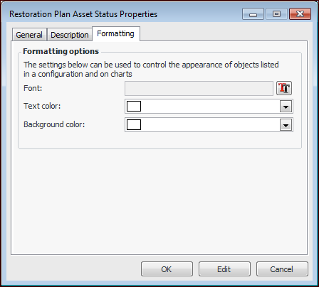 9. Select the Formatting tab if you wish to distinguish the status from others when it appears in tables and charts.