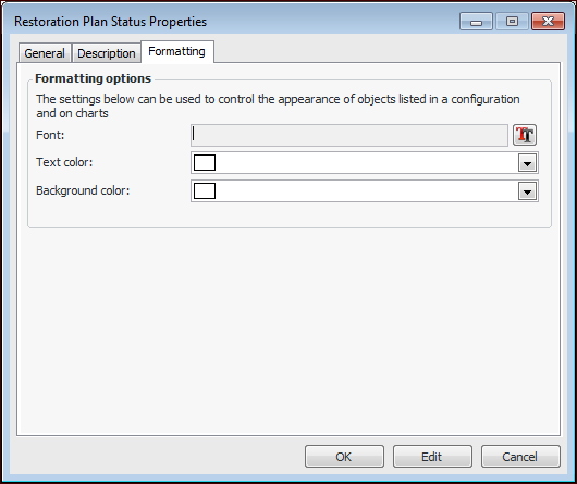 9. Select the Formatting tab if you wish to distinguish the status from others when it appears in tables and charts.
