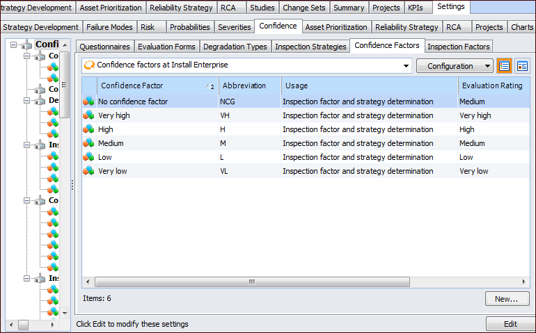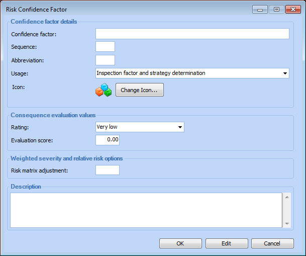 3. Click New. The Risk Confidence Factor dialog appears, for example: