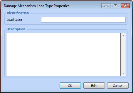 3. For each of the load types required by your organization, click New. The Damage Mechanism Load Type Properties dialog appears.