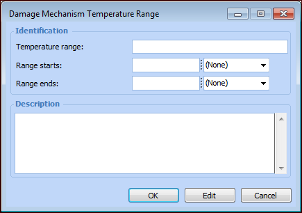 3. For each of the temperature ranges required by your organization, click New. The Damage Mechanism Temperature Range dialog appears.