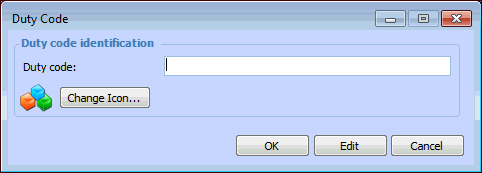 3. Click New. The Duty Code dialog appears.