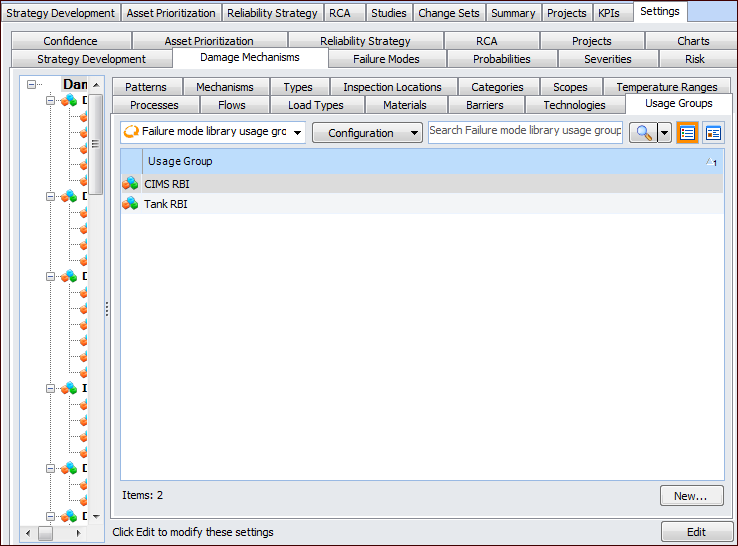 • Setting Failure Mode Options for an RBI Analysis – explains how to assign usage groups in an RBI analysis’s Failure Mode settings.To Create a Usage Group