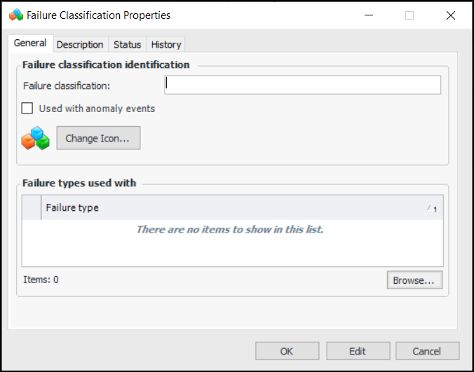 8. Click OK to save the failure type and close the dialog.To Define Failure Classifications