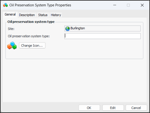 3. Click New. The Oil Preservation System Type Properties dialog appears: