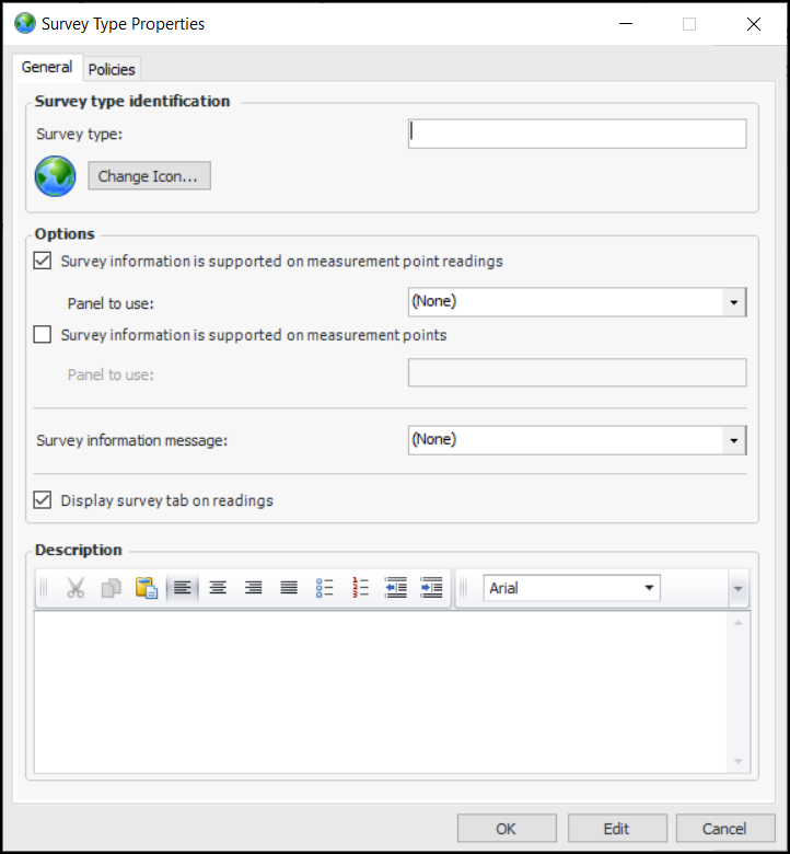4. In the Survey Type box, enter a descriptive name for the type of survey.