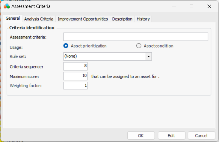 3. Click New. The Assessment Criteria dialog appears.