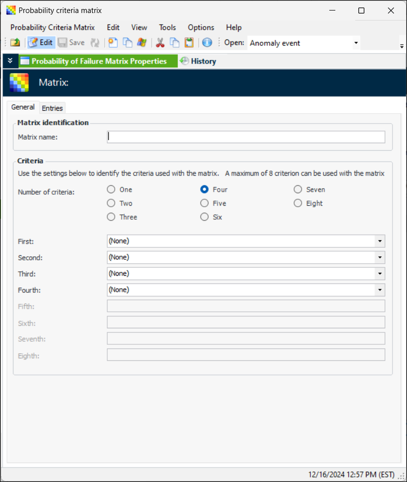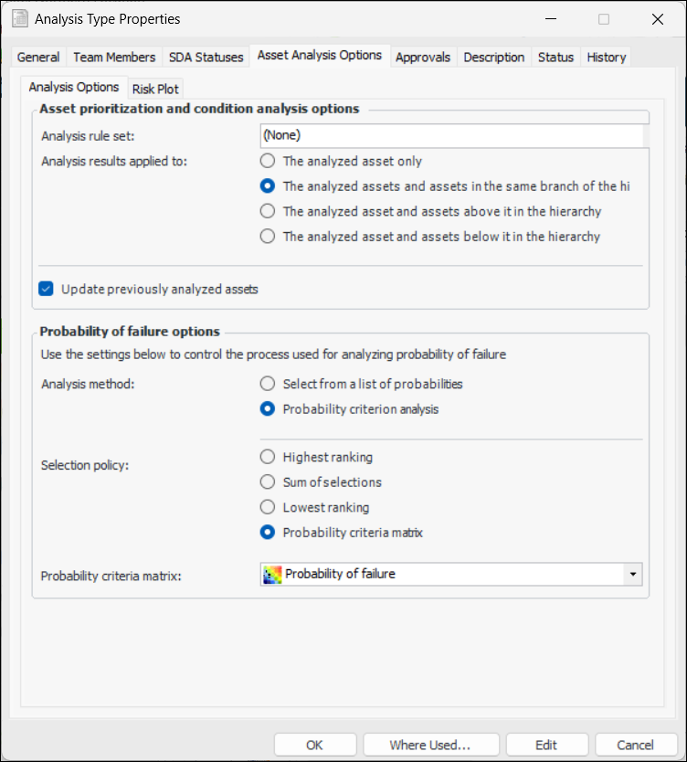 10. Click OK to close the Probability Criteria Matrix Entry Properties dialog.To Assign a Matrix to an Analysis Type