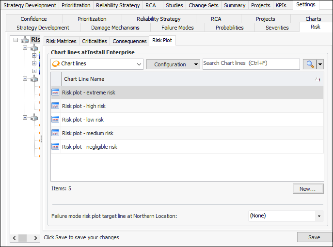 4. Select a value in the Failure mode risk plot target line at this site list.