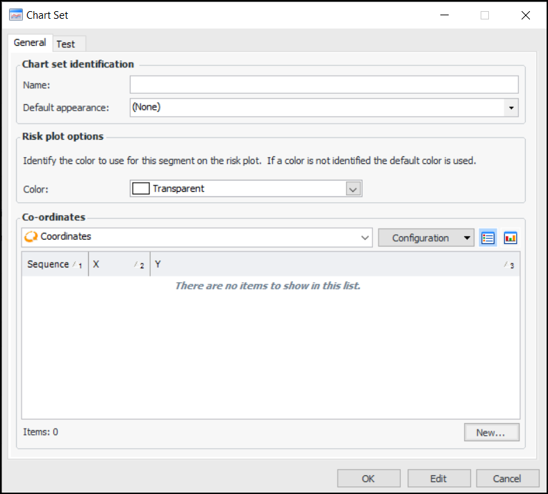 5. For each coordinate on the line, click New. The Chart Line Coordinates dialog appears.